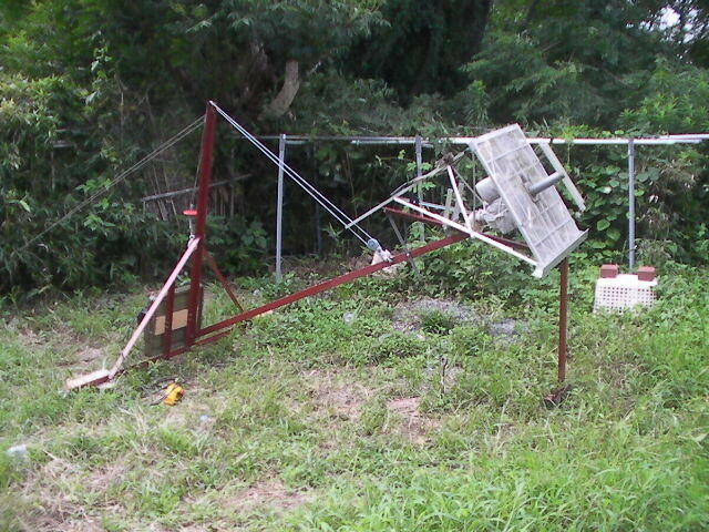 432実験用枠にRL・LNA・ケーブルなどを想定してバケツに2kgの鉄くずを追加して 動きをみてみる。問題は無い。 実際は取り付け角度を考慮するとコンナに高くは上げる必要は無い。JA1WQF笠井さんお勧めの透明塗料を塗布。