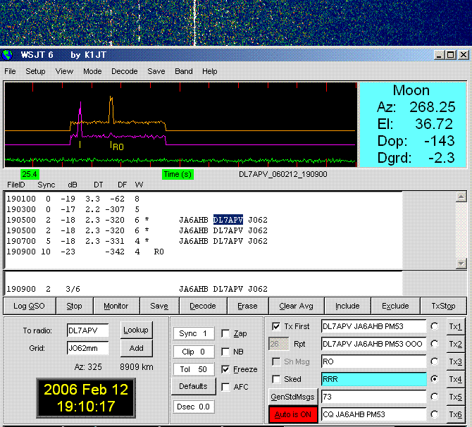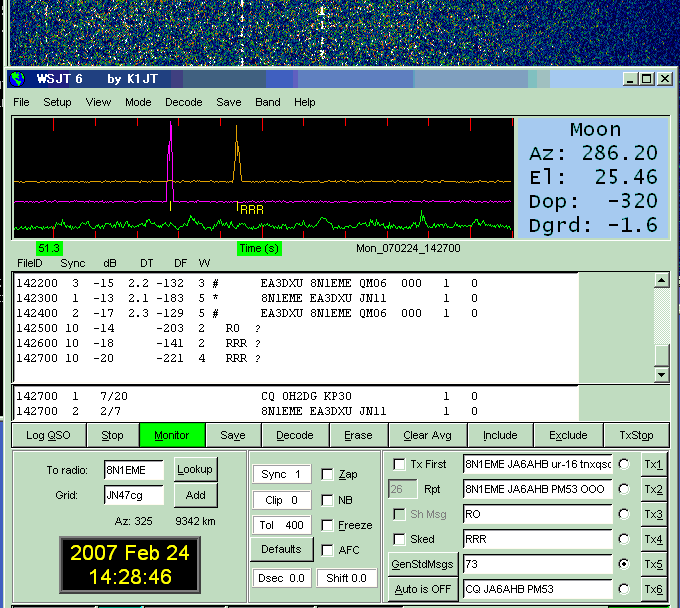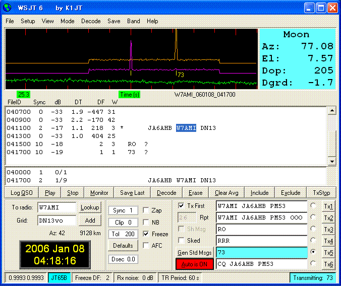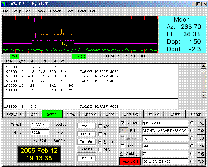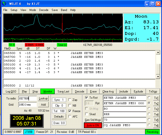 WSJT 6 Ver.5.9.0. Sked on 432.040. (by JT65 EME Link) KE7NR
